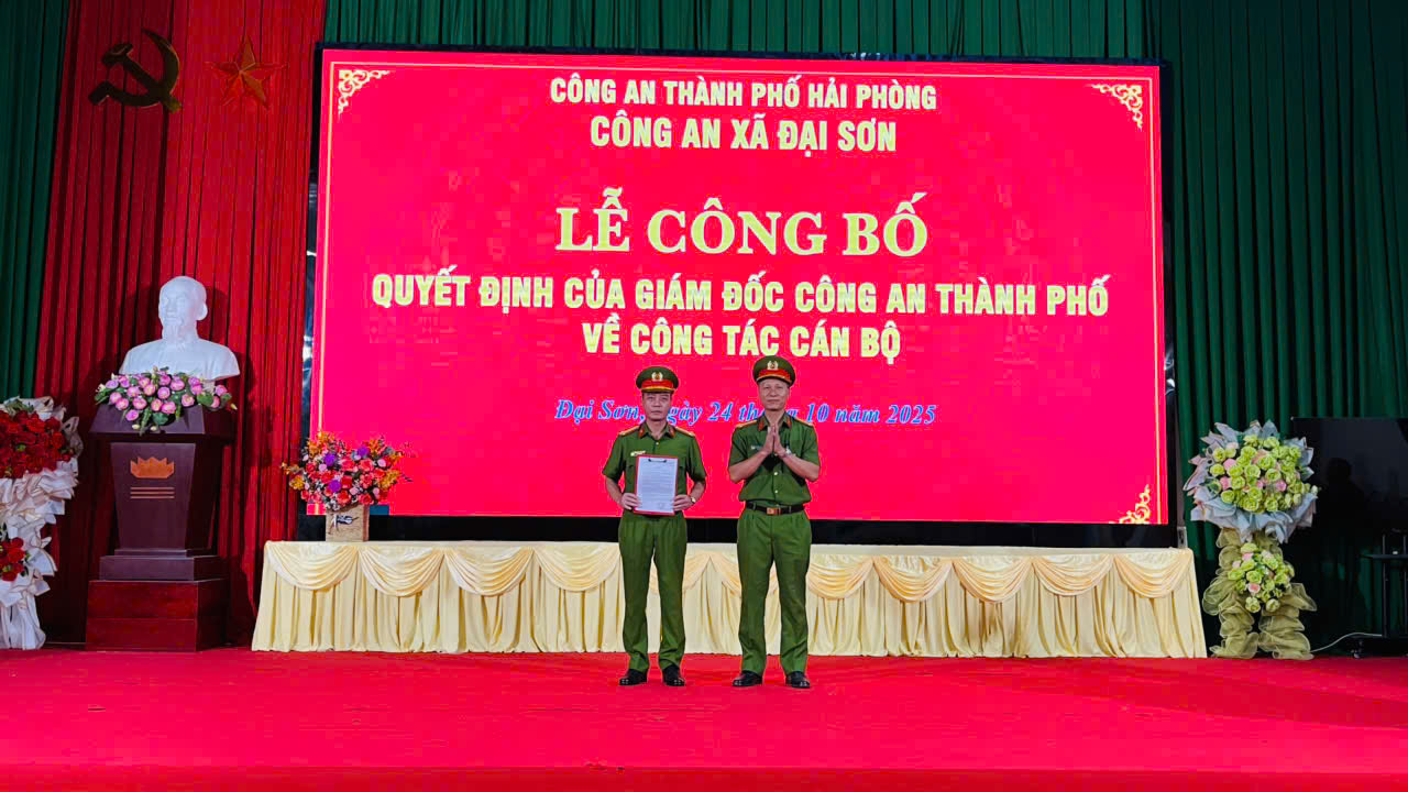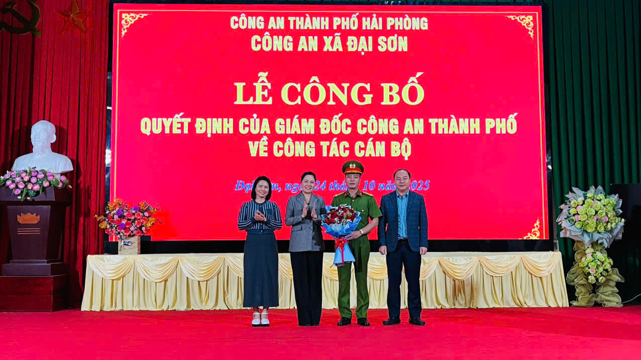Chiều ngày 24/10, Công an xã Đại Sơn long trọng tổ chức Lễ công bố Quyết định của Giám đốc Công an thành phố Hải Phòng về công tác cán bộ.