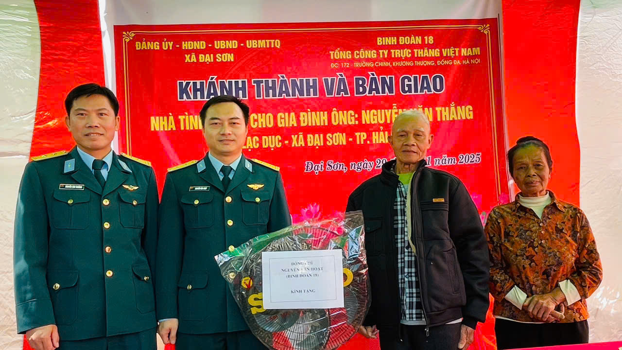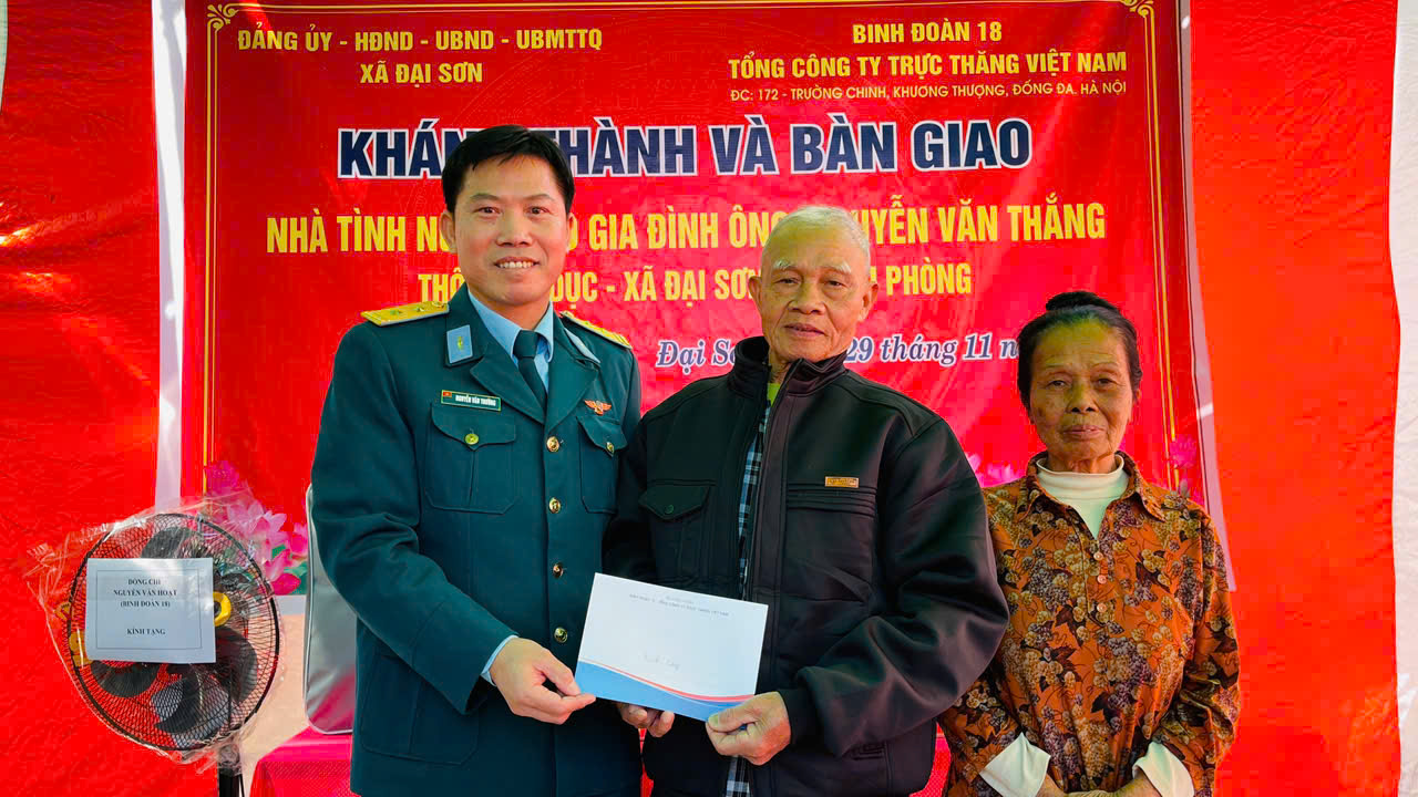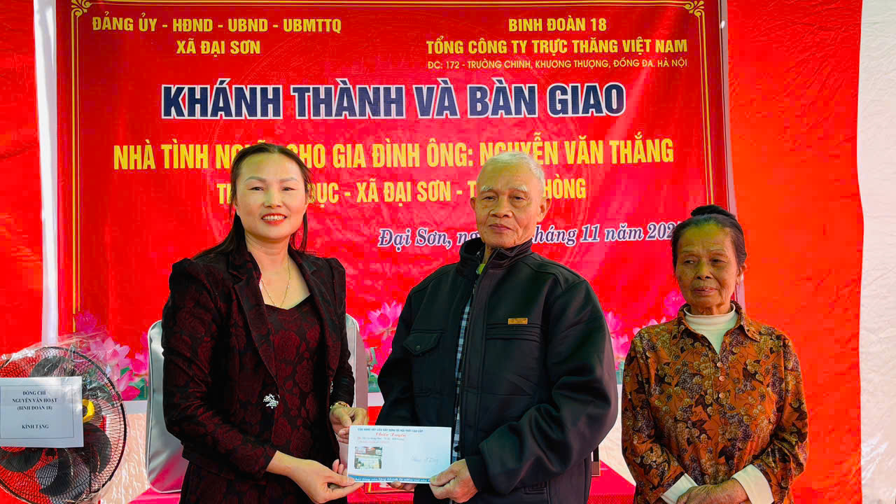 Ngày 29/11, Đảng ủy, HĐND, UBND, Ủy ban MTTQVN xã Đại Sơn phối hợp với Tổng Công ty Trực thăng Việt Nam (Binh đoàn 18) tổ chức lễ khánh thành và bàn giao nhà tình nghĩa cho gia đình ông Nguyễn Văn Thắng, thôn Lạc Dục.