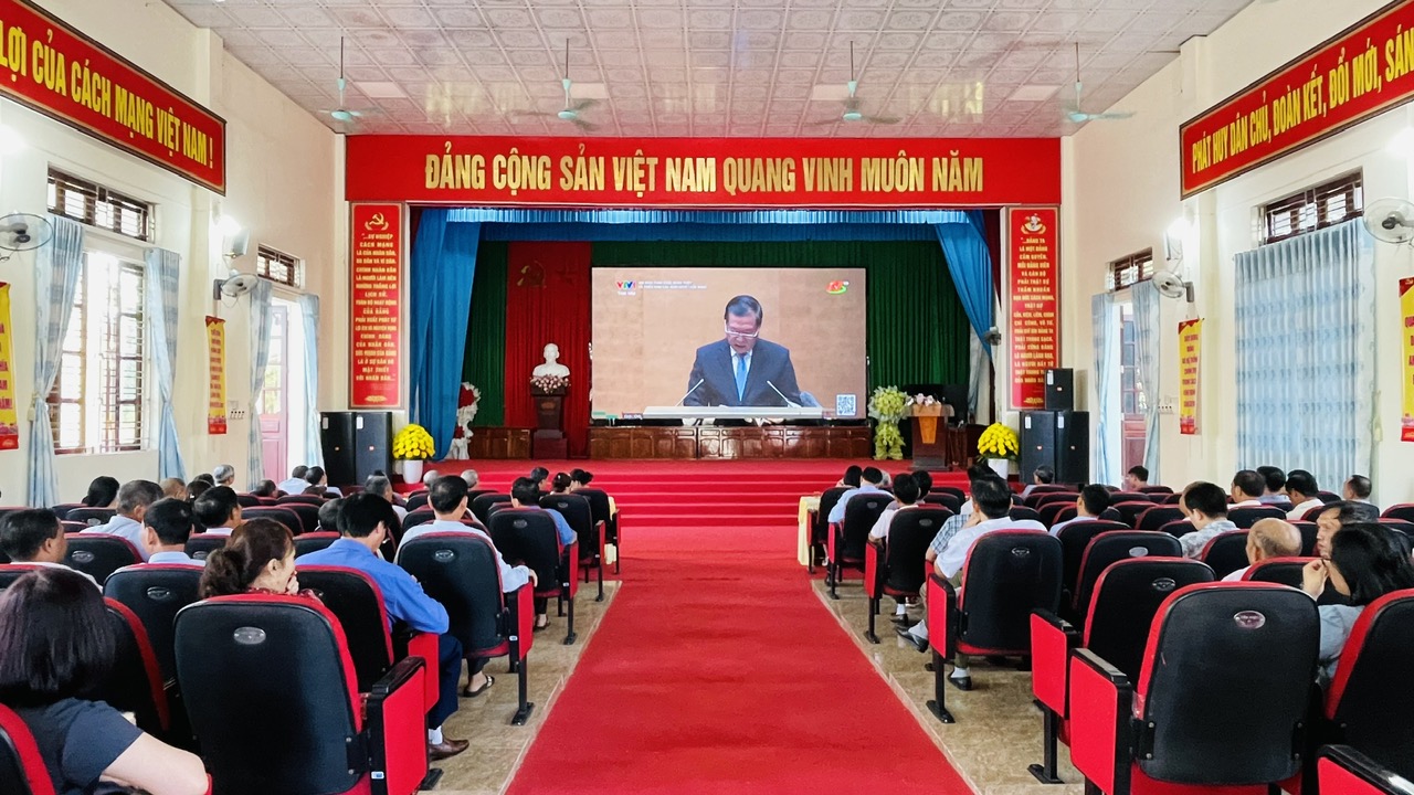 Tham dự tại điểm cầu xã có các đồng chí Thường trực Đảng uỷ; các đồng chí nguyên uỷ viên Ban Thường vụ, Phó chủ tịch HĐND, UBND cấp huyện, xã đã nghỉ hưu trên địa bàn; Uỷ viên Ban Chấp hành Đảng bộ xã; Uỷ viên Uỷ ban kiểm tra Đảng uỷ; Trưởng, Phó ban, phòng, Mặt trận Tổ quốc và các tổ chức chính trị - xã hội, đơn vị sự nghiệp; bí thư các chi bộ, trưởng thôn, phó thôn, cấp uỷ, Bí thư, Phó Bí thư, hiệu trưởng, phó hiệu trưởng các trường học, cán bộ y tế tiêu biểu cùng toàn thể cán bộ, đảng viên cơ quan Đảng ủy, UBND xã.
