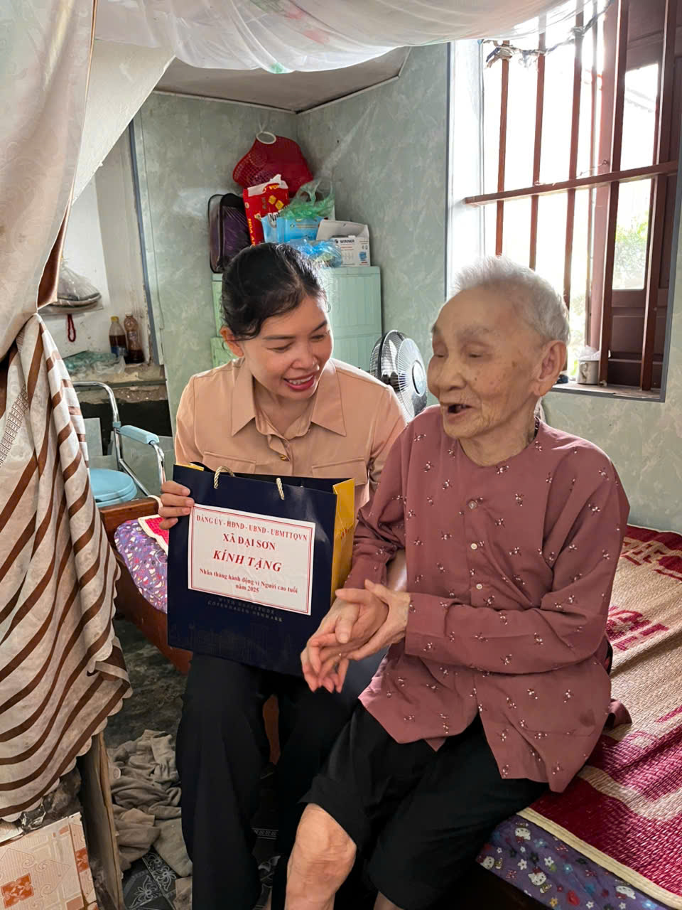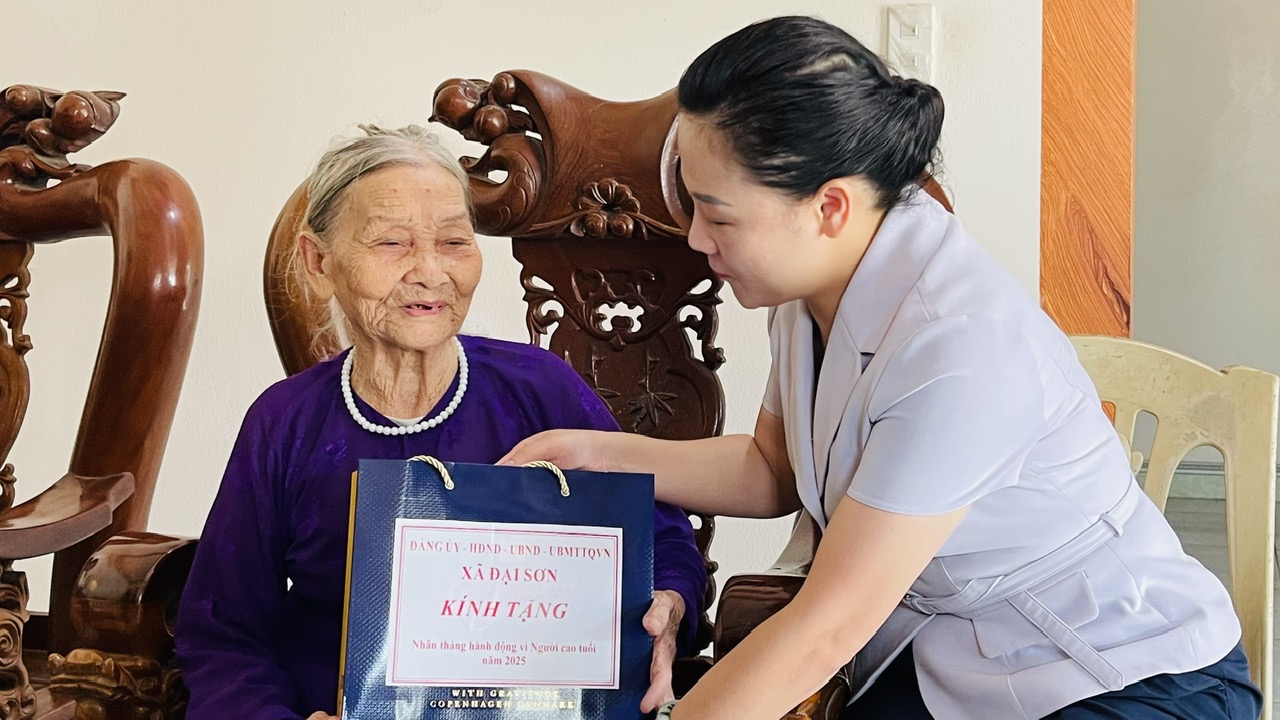 Nhằm thể hiện sự quan tâm của Đảng, chính quyền địa phương đối với người cao tuổi, góp phần nâng cao đời sống tinh thần, tạo niềm vui, động viên các cụ sống vui, sống khoẻ; sáng ngày 01/10/2025, Đảng ủy, HĐND, UBND, Ủy ban MTTQ Việt Nam xã Đại Sơn đã thành lập 05 đoàn đến thăm, tặng quà 19 cụ từ 100 tuổi trở lên và những người cao tuổi khuyết tật, thuộc diện hộ nghèo trên địa bàn xã.