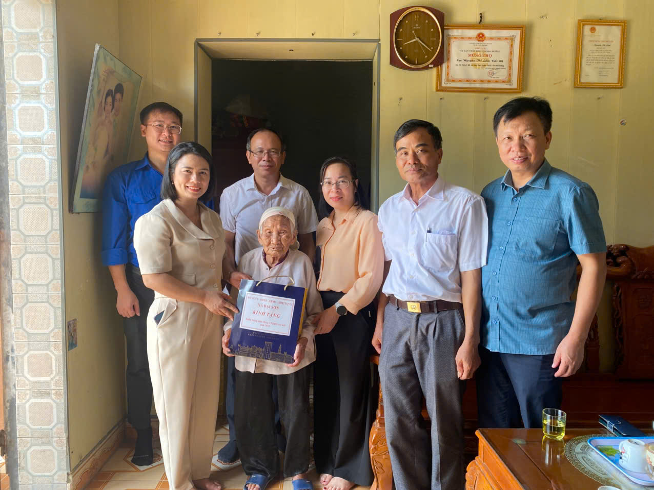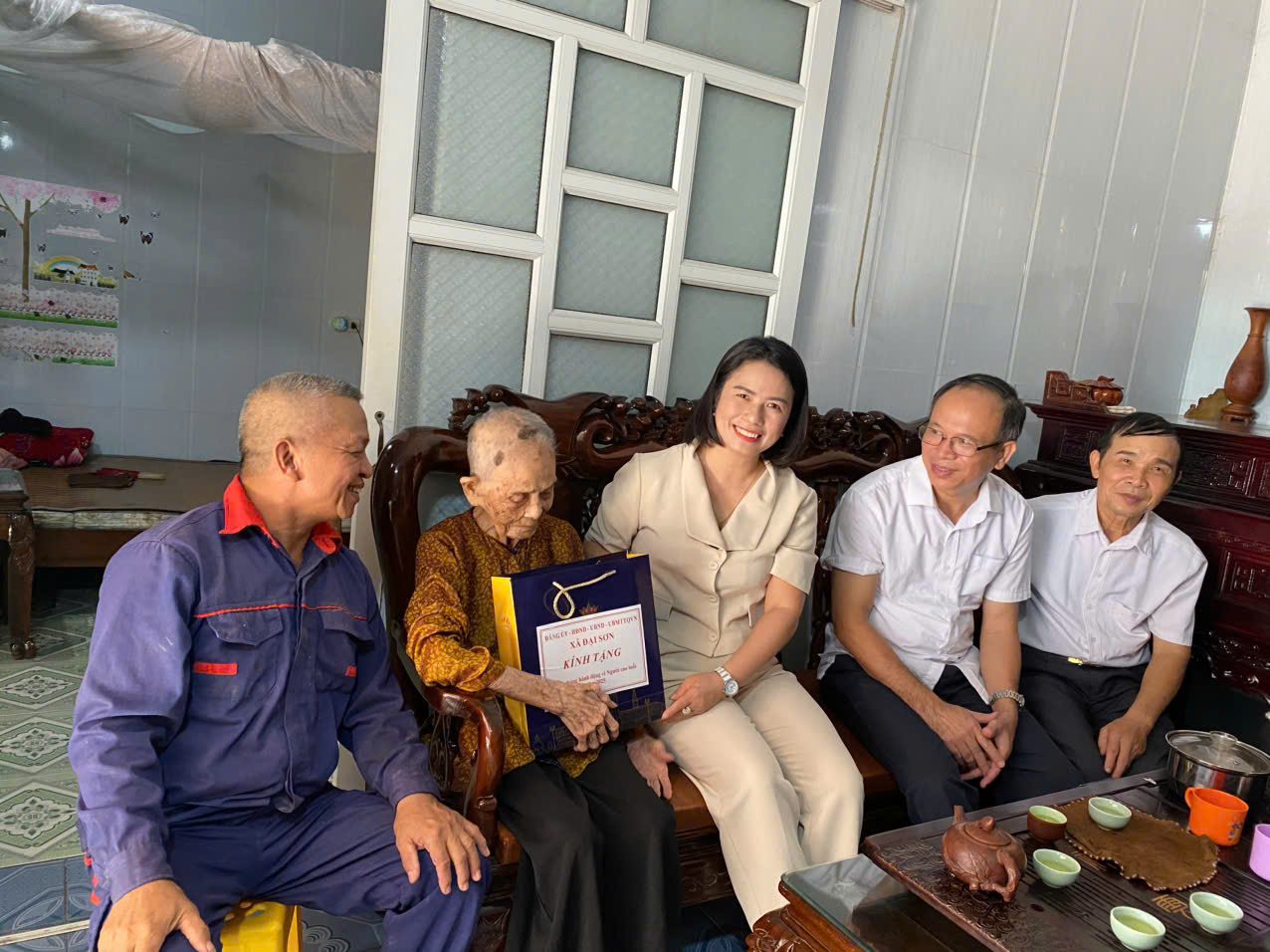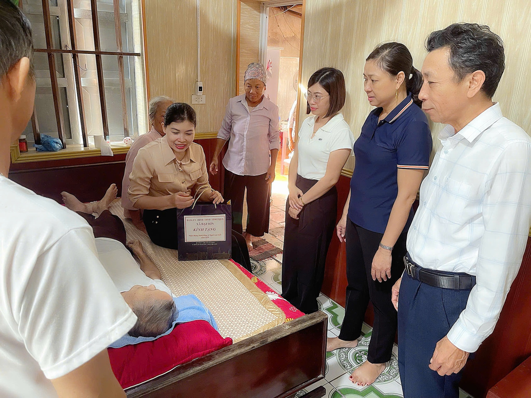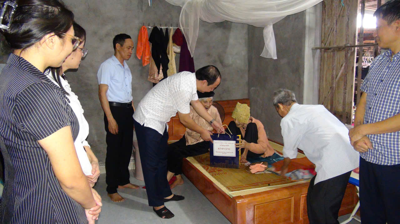 Đoàn do đồng chí đồng chí Đào Văn Soái, Phó Bí thư, Chủ tịch UBND xã làm Trưởng đoàn đã đến thăm cụ Nguyễn Thị Thau, cụ Lê Thị Ngả, cụ Nguyễn Thị Thuông, cụ Lê Thị Bia, thôn Thượng Hải.