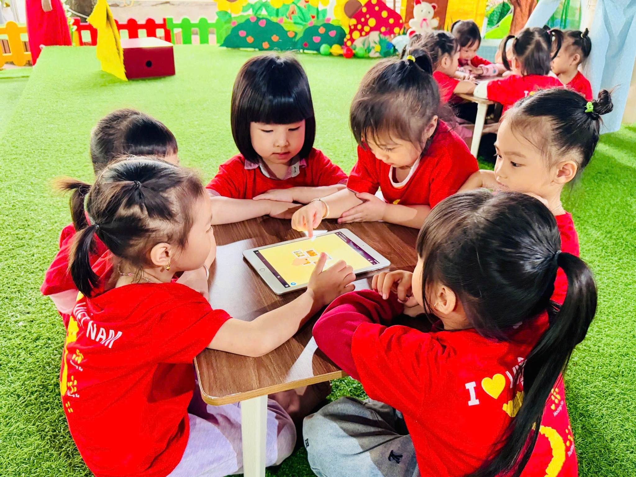 Trong không khí học tập sôi nổi và đầy hứng khởi, các cô giáo đã vận dụng linh hoạt các công cụ trí tuệ nhân tạo để tạo nên những giờ kể chuyện sinh động, hấp dẫn. Trẻ được tương tác với hình ảnh, âm thanh và nhân vật do AI hỗ trợ; được trải nghiệm các phần mềm kể chuyện trực quan, qua đó phát triển ngôn ngữ, tư duy, trí tưởng tượng và khả năng sáng tạo.