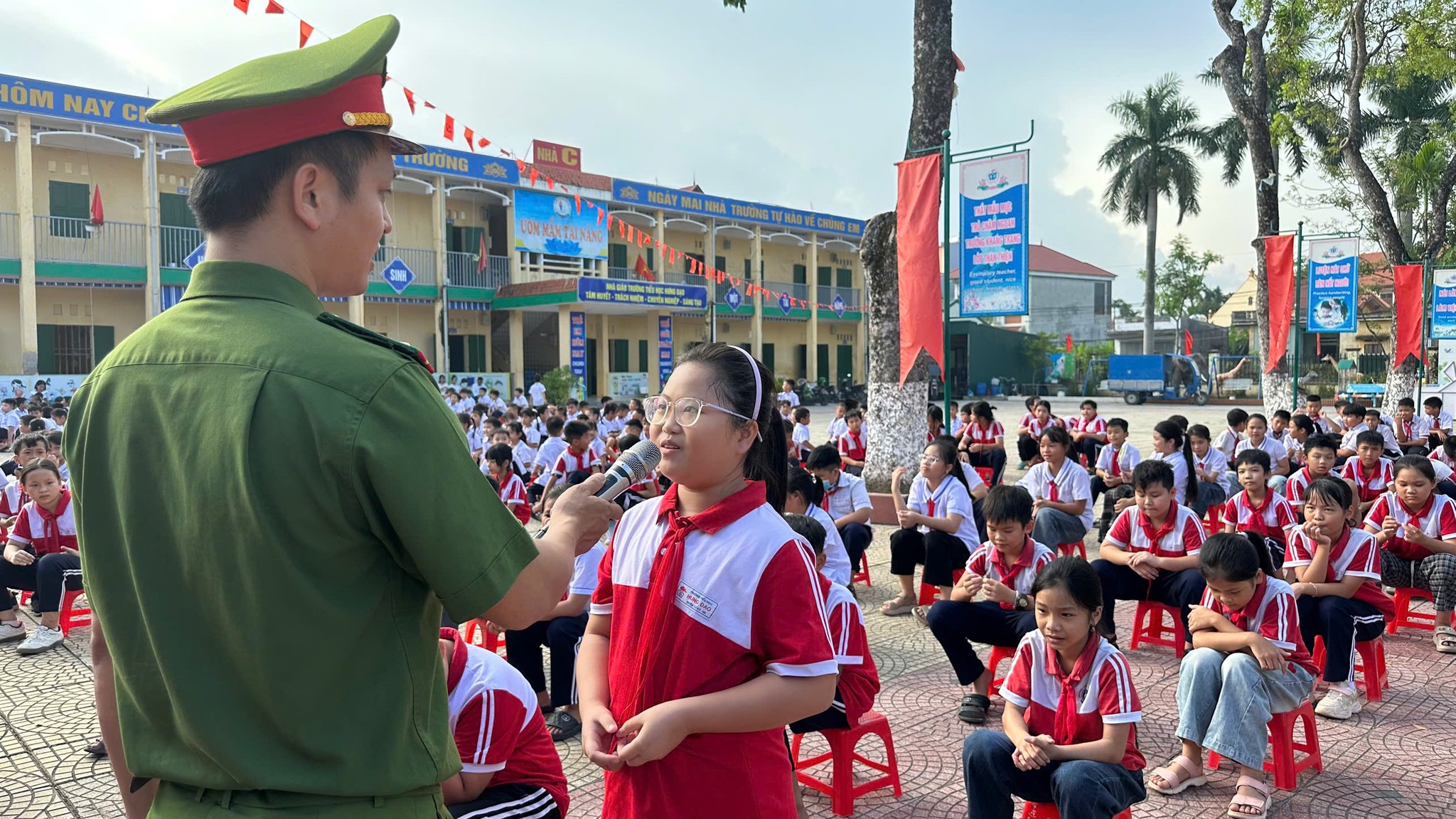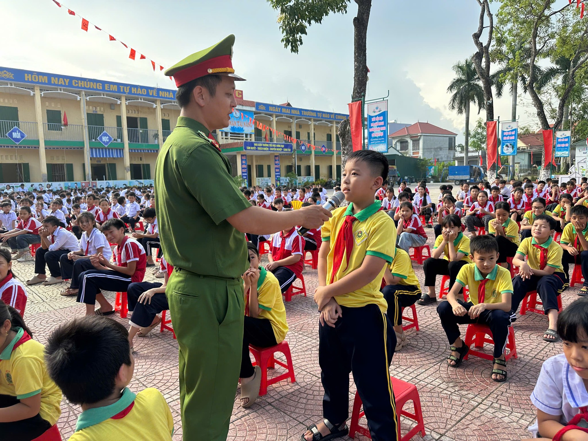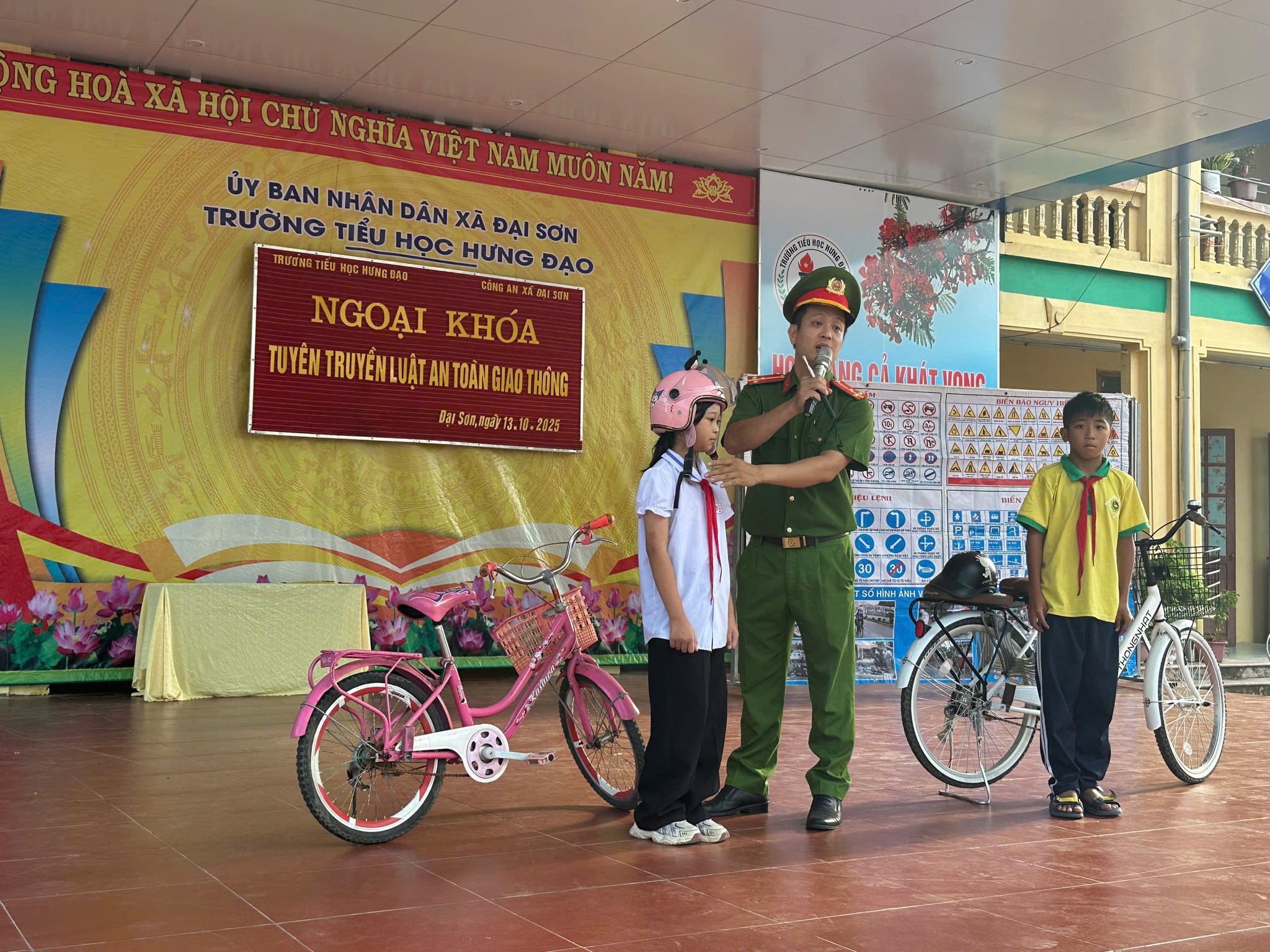 Sáng ngày 13/10/2025, Công an xã Đại Sơn phối hợp với Trường Tiểu học Hưng Đạo tổ chức buổi ngoại khóa tuyên truyền, giáo dục pháp luật về an toàn giao thông cho toàn thể cán bộ, giáo viên và học sinh trong nhà trường.