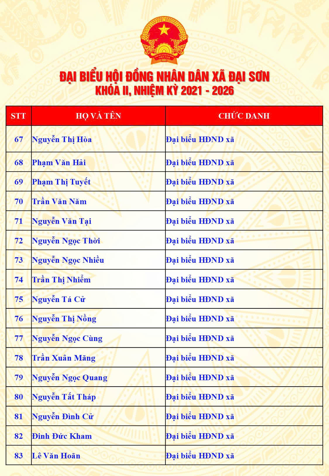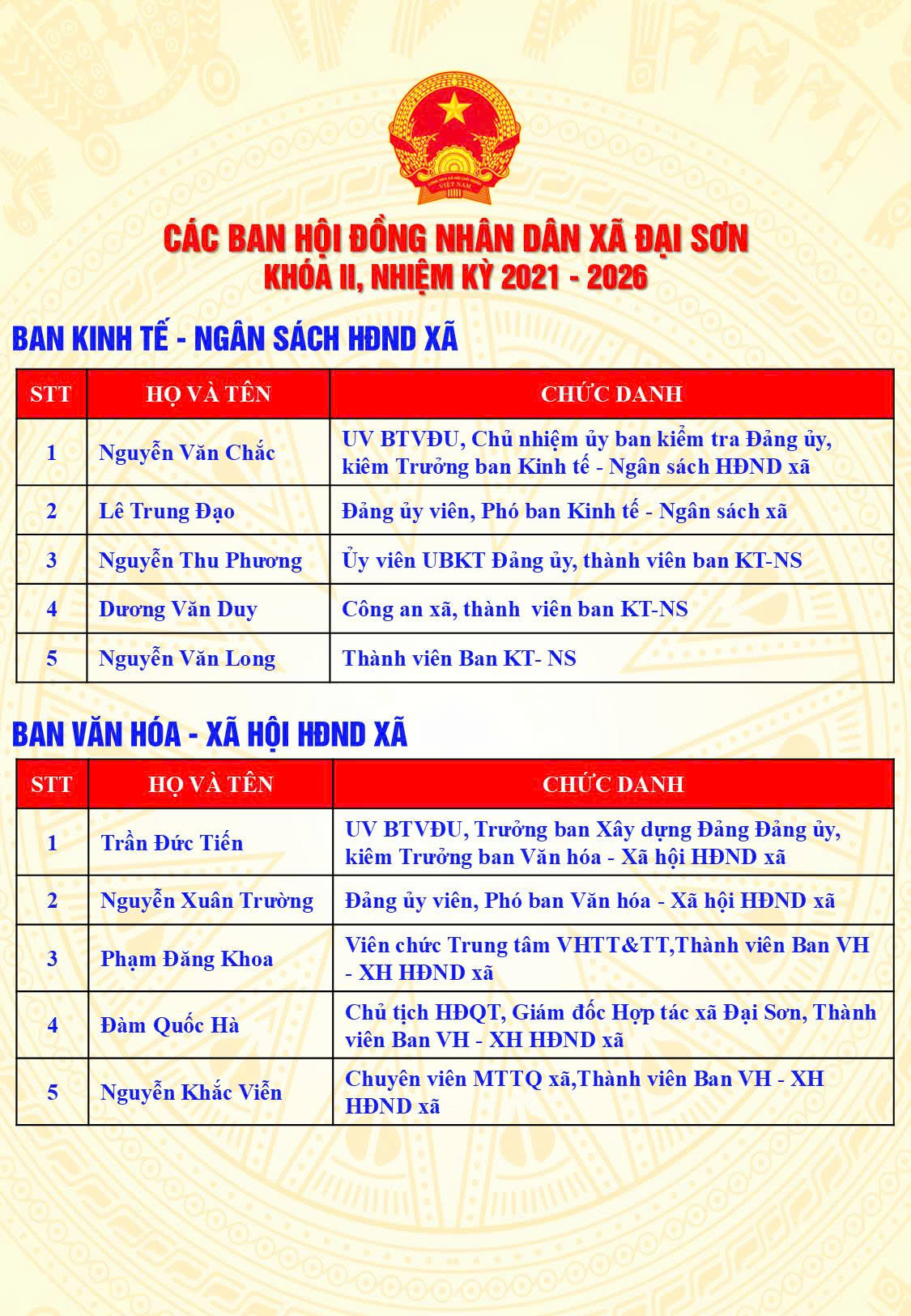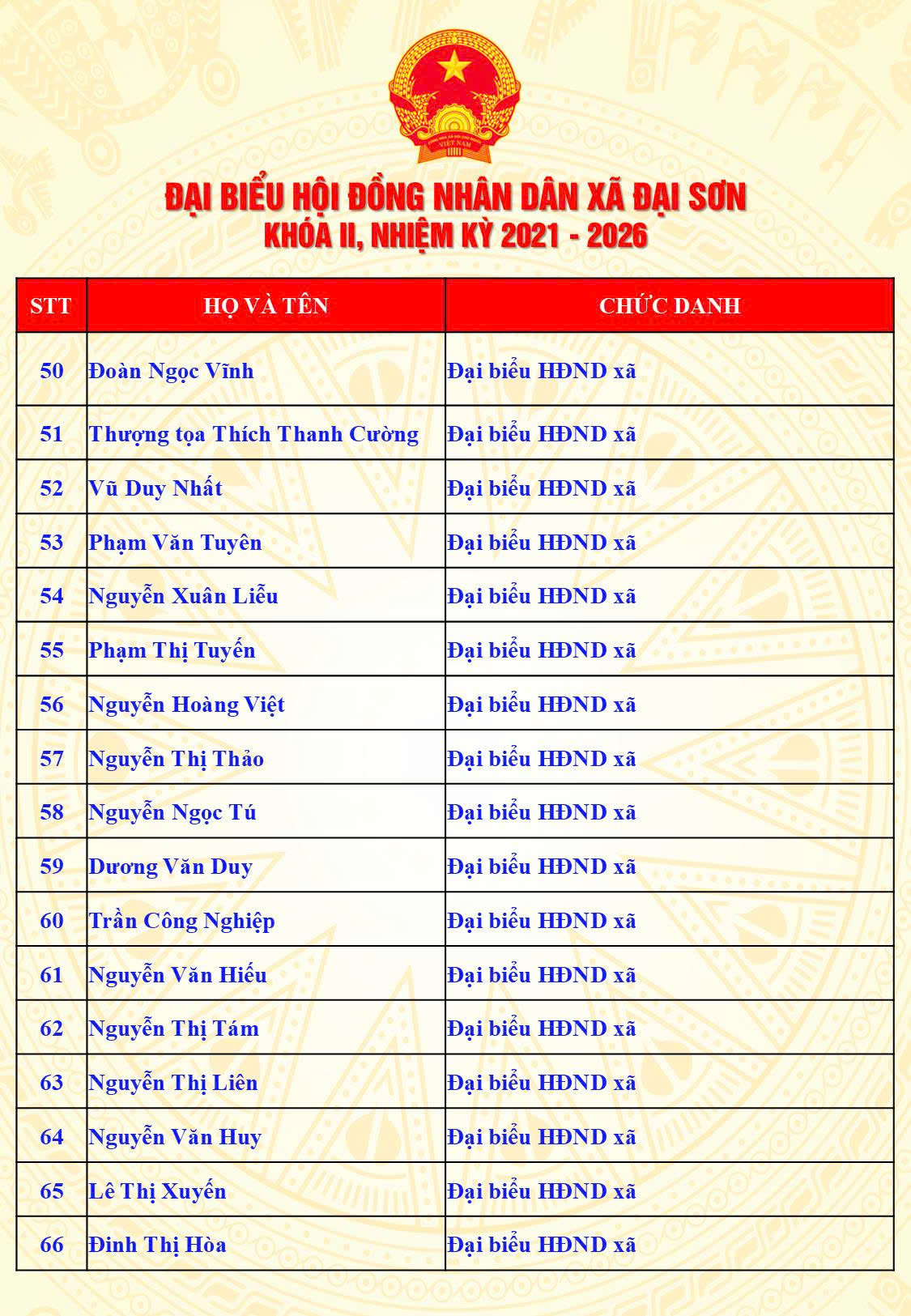 Danh sách Thường trực HĐND xã, các Ban HĐND xã và Đại biểu HĐND xã Đại Sơn Khóa II, nhiệm kỳ 2021 - 2026
