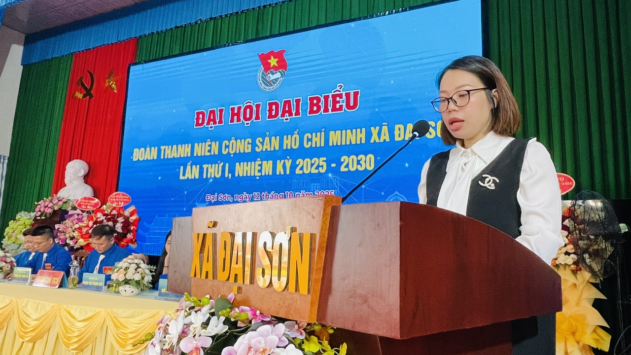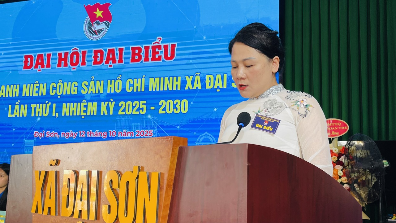 Phát biểu chỉ đạo tại Đại hội, đồng chí Dương Thị Hương Giang, Phó Bí thư thành đoàn, Chủ tịch Hội đồng đội thành phố và đồng chí Trịnh Ngọc Ánh, Bí thư Đảng ủy, Chủ tịch HĐND xã biểu dương tinh thần đoàn kết, năng động, sáng tạo của tuổi trẻ Đại Sơn trong nhiệm kỳ vừa qua. Đồng chí ghi nhận những kết quả nổi bật của Đoàn xã trong công tác tuyên truyền, giáo dục chính trị, chuyển đổi số, bảo vệ môi trường, chăm lo thiếu nhi và các hoạt động an sinh xã hội. Đồng chí nhấn mạnh: “Tuổi trẻ Đại Sơn cần tiếp tục phát huy vai trò xung kích, sáng tạo, đi đầu trong chuyển đổi số, phát triển kinh tế - xã hội, xây dựng nông thôn mới nâng cao; tích cực học tập, rèn luyện, khẳng định bản lĩnh, trí tuệ và khát vọng cống hiến của thế hệ trẻ trong thời kỳ mới.” Đảng ủy xã Đại Sơn luôn quan tâm, tạo điều kiện và tin tưởng rằng Đoàn Thanh niên xã sẽ tiếp tục khẳng định vai trò là lực lượng tiên phong, xứng đáng là cánh tay đắc lực của Đảng, góp phần xây dựng quê hương Đại Sơn ngày càng phát triển.