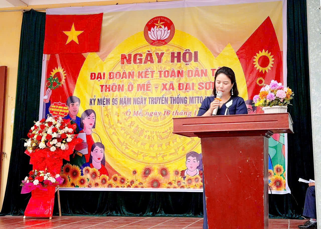 Phát biểu tại Ngày hội, đồng chí Trương Thị Toan biểu dương những kết quả nổi bật của thôn Ô Mễ trong năm 2025; đồng thời đề nghị thôn tiếp tục phát huy tinh thần đoàn kết, triển khai hiệu quả 5 nội dung của Cuộc vận động “Toàn dân đoàn kết xây dựng nông thôn mới, đô thị văn minh”; đẩy mạnh chuyển đổi số; giữ vững an ninh trật tự; thực hiện tốt Quy chế dân chủ ở cơ sở và hoàn thành các nhiệm vụ năm 2026.